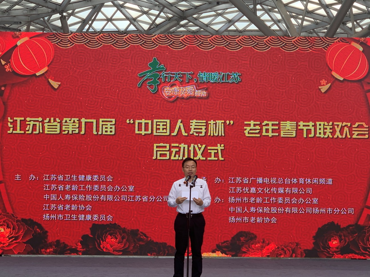 9月27日,由江苏省卫生健康委员会、江苏省老龄工作委员会办公室、中国人寿保险股份有限公司江苏省分公司、江苏省老龄协会、扬州市卫生健康委员会联合主办的江苏省第九届老年春节联欢会启动仪式在扬州举行,正式拉开了本届老年春晚的序幕。江苏省卫生健康委副主任邱泽森、扬州市副市长余珽、江苏省老龄协会副会长何小鹏、中国人寿保险股份有限公司江苏省分公司副总经理冉正源、江苏广电总台体育休闲频道总监肖强、扬州市卫生健康委主任赵国祥、扬州市老龄协会副会长潘建民、中国人寿保险股份有限公司扬州市分公司总经理姚盛锋出席启动仪式。