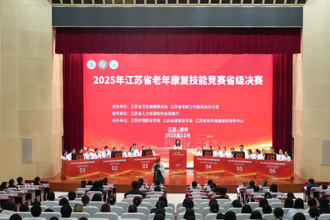 12月4-6日,2025年江苏省老年康复技能竞赛省级决赛在淮安成功举办,省卫生健康委副主任、省中医药管理局局长朱岷出席竞赛活动并讲话。省民政厅副厅长、一级巡视员邱泽森,省人力资源社会保障厅二级巡视员金松,江苏护理职业学院党委书记陆志群,党委副书记、院长傅玉峰等出席竞赛颁奖仪式。