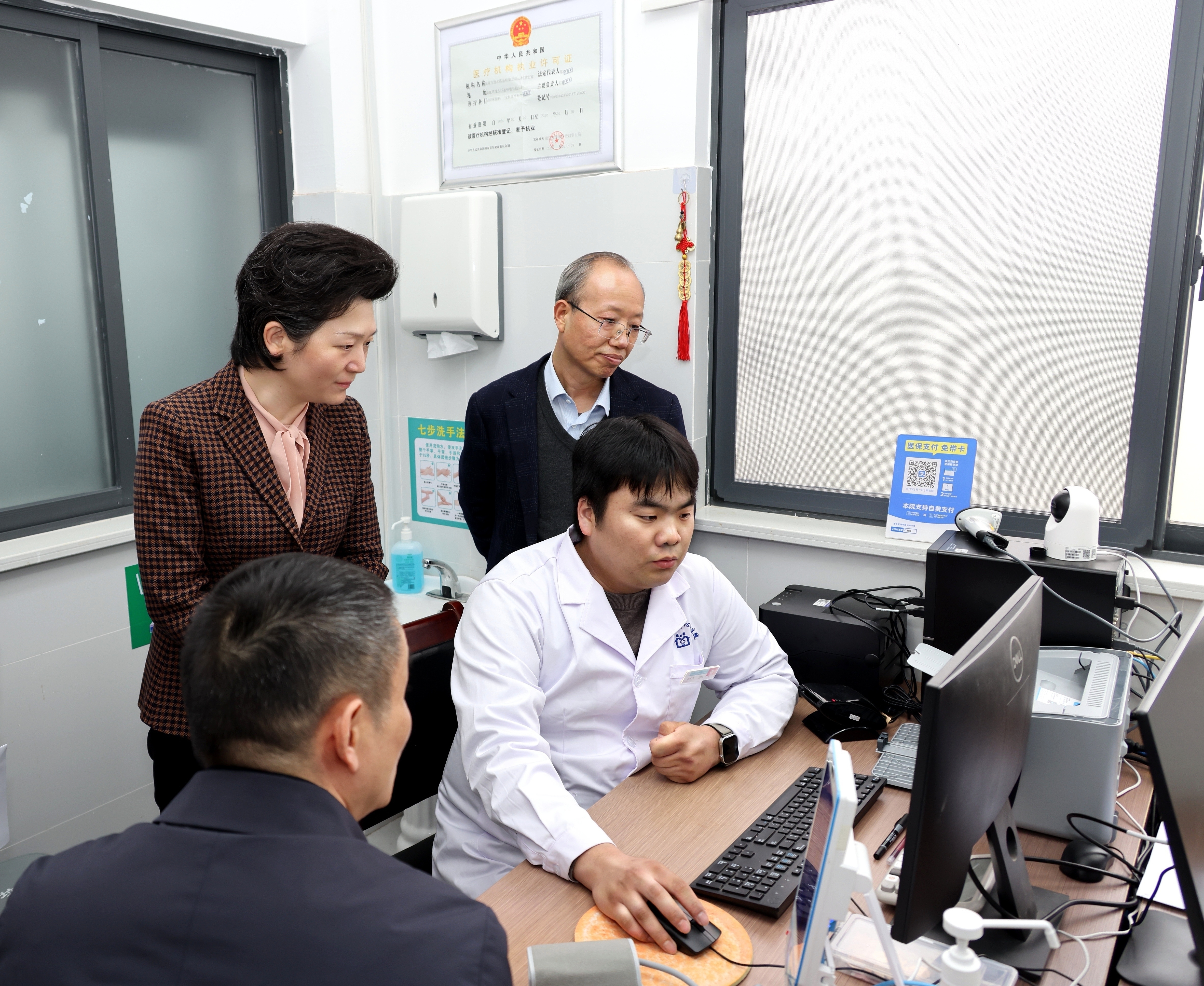 3月26日下午,省卫生健康委党组书记、主任谭颖带队赴南京市溧水区晶桥镇云鹤山村卫生室,专题调研省政府民生实事项目——村卫生室医用筒式血压仪配备使用情况。